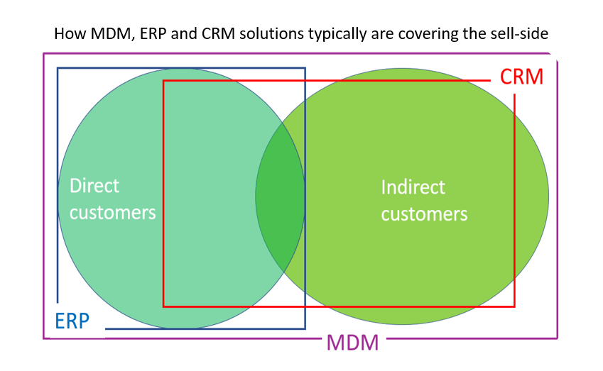 When working with Master Data Management (MDM) for the customer master data domain one of the core aspects to be aware of is the union, intersection and difference between direct customers and indirect customers.